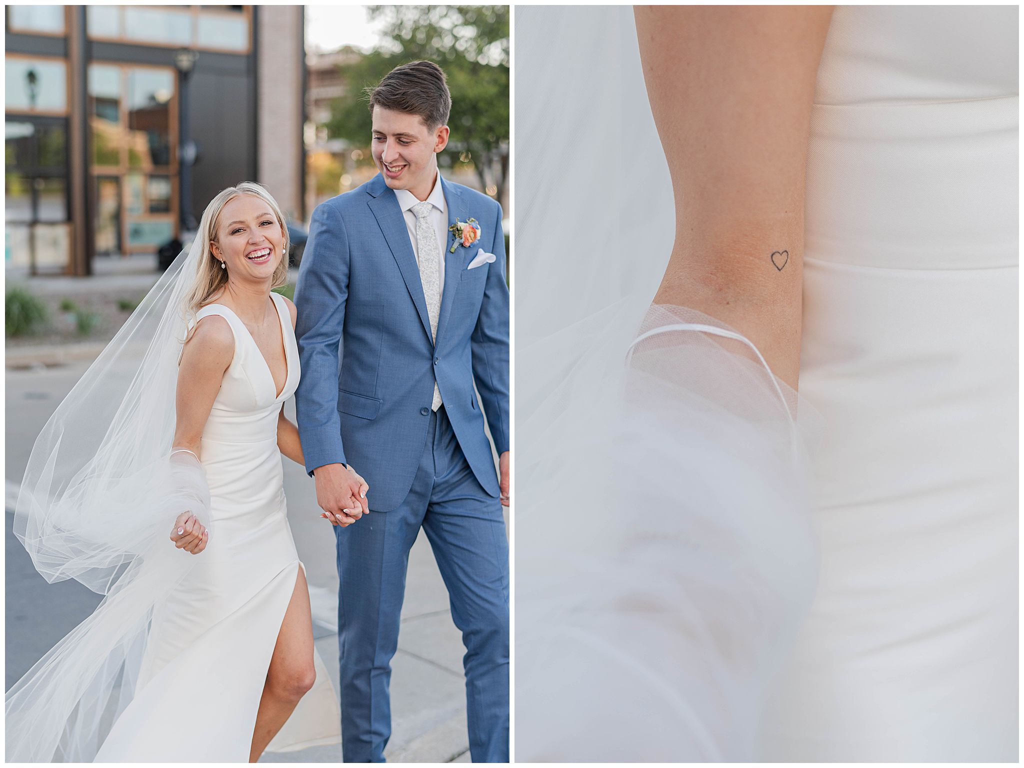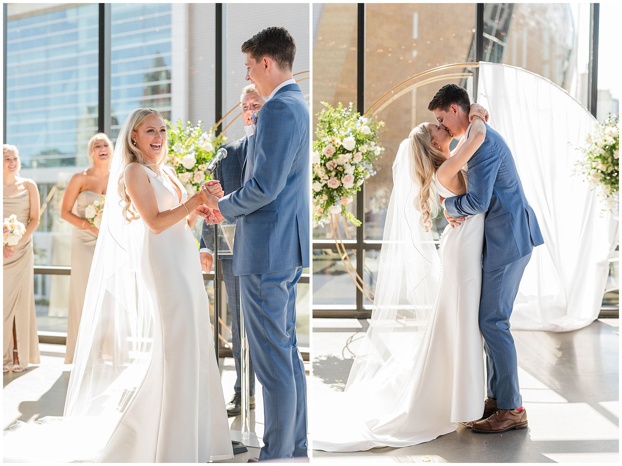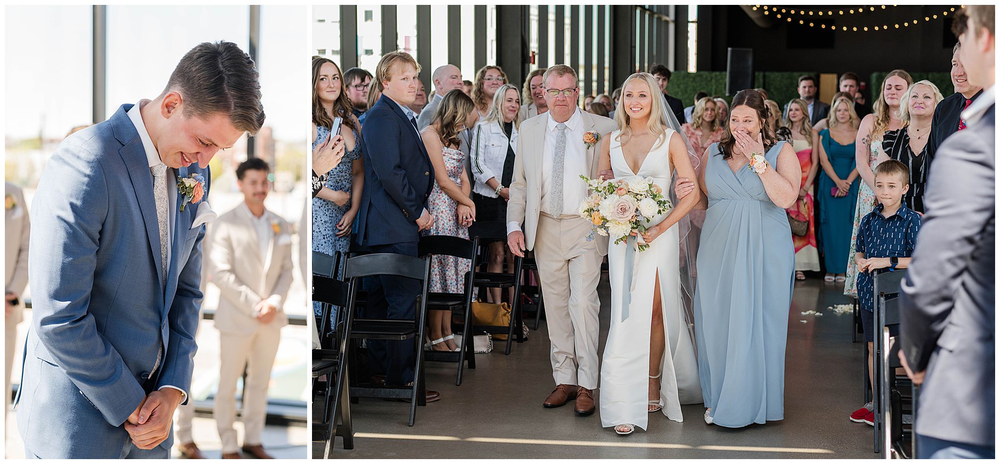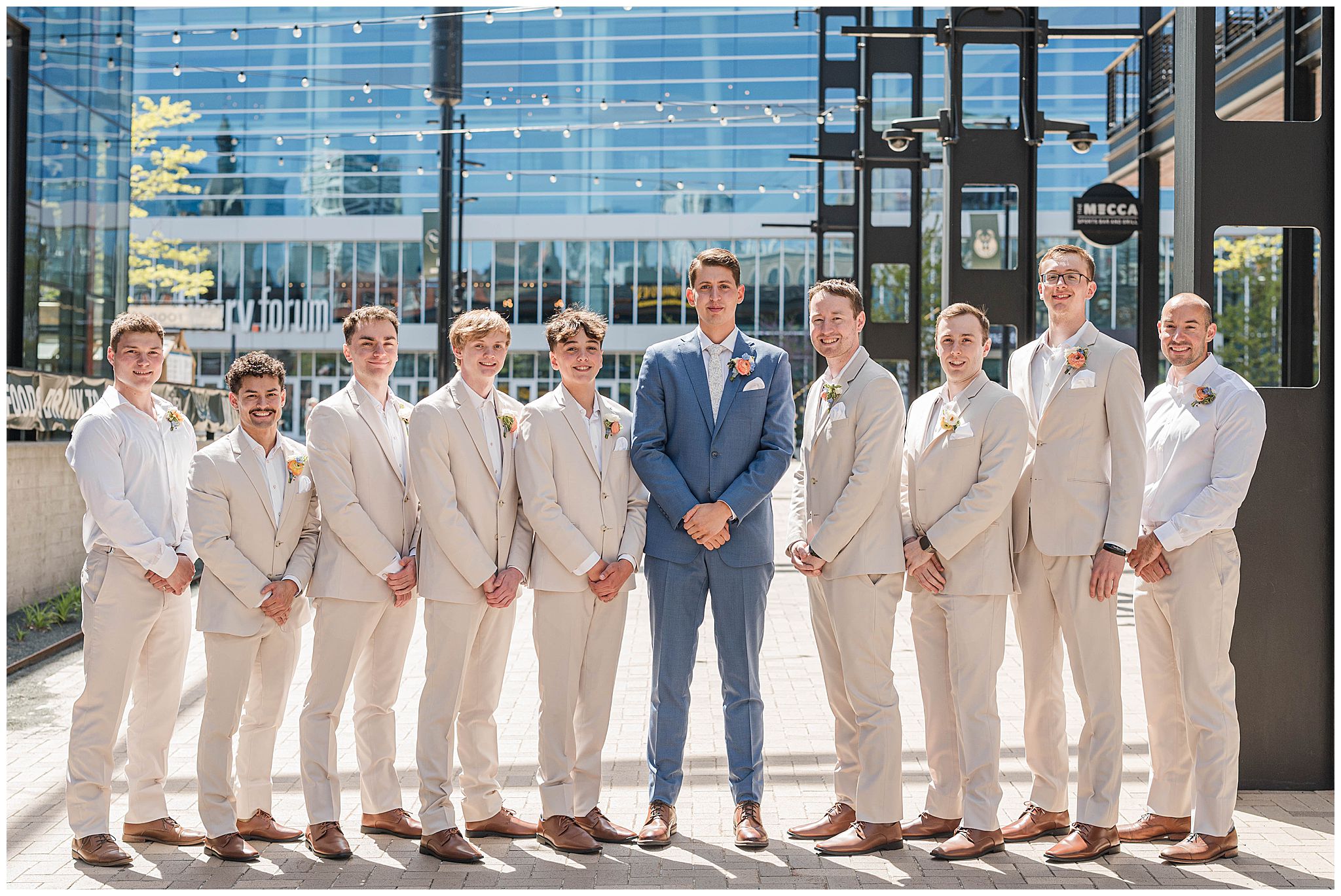 The day began just steps away from the venue at The Trade Hotel, located directly across the street from Gather at Deer District. I’ve had many couples get ready there and it makes that day so seamless with such little travel time. The hotel itself is incredibly classy, with unique design elements and a high-end feel, offering multiple beautiful spaces that are perfect for getting ready. Natural light, modern textures, and an upscale atmosphere set the tone for the day, and being able to simply walk across the street to the venue was such a luxury â especially in the middle of a vibrant Milwaukee wedding day.