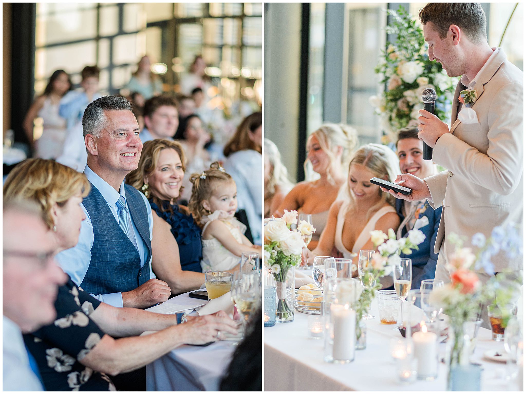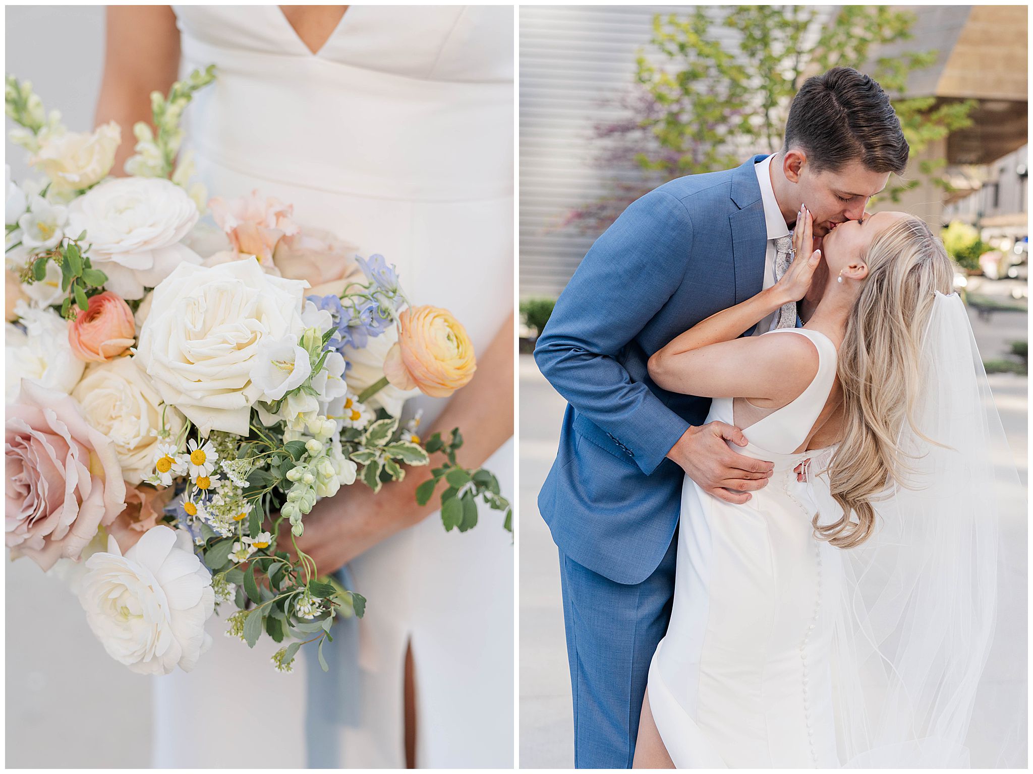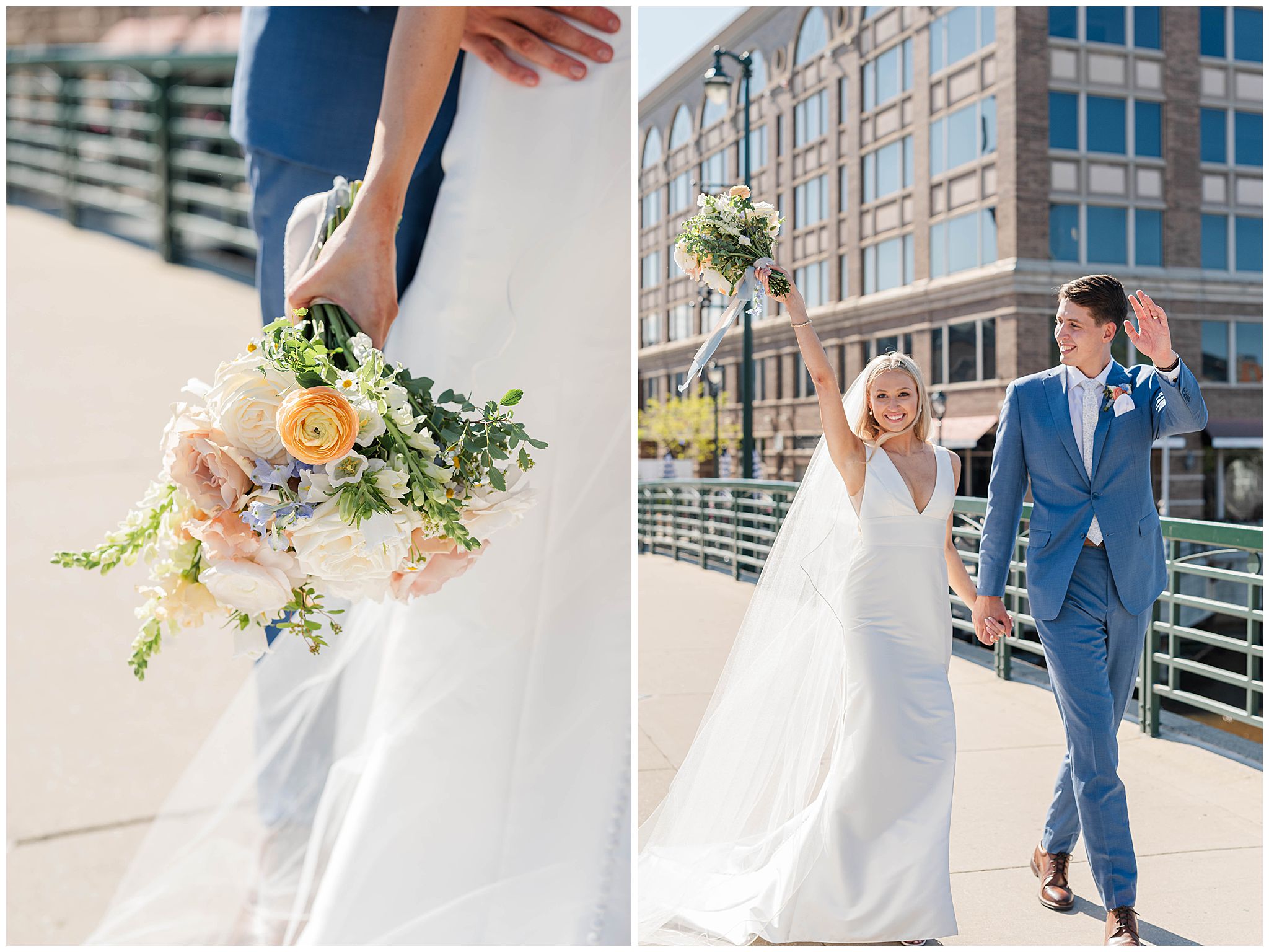 As guests arrived in the Deer District, the energy of the city surrounded them â spring sunshine, buzzing streets, and the excitement of celebrating a couple so clearly adored by their friends and family. Gather at Deer District provided the perfect backdrop for Elora and Dayneâs vision. The modern, bright open space came alive with soft spring colors, thoughtful design choices, and a wedding party whose style perfectly complemented the aesthetic. Neutral tones mixed with subtle pops of color, fresh florals, and timeless details created a look that felt polished, joyful, and inviting!