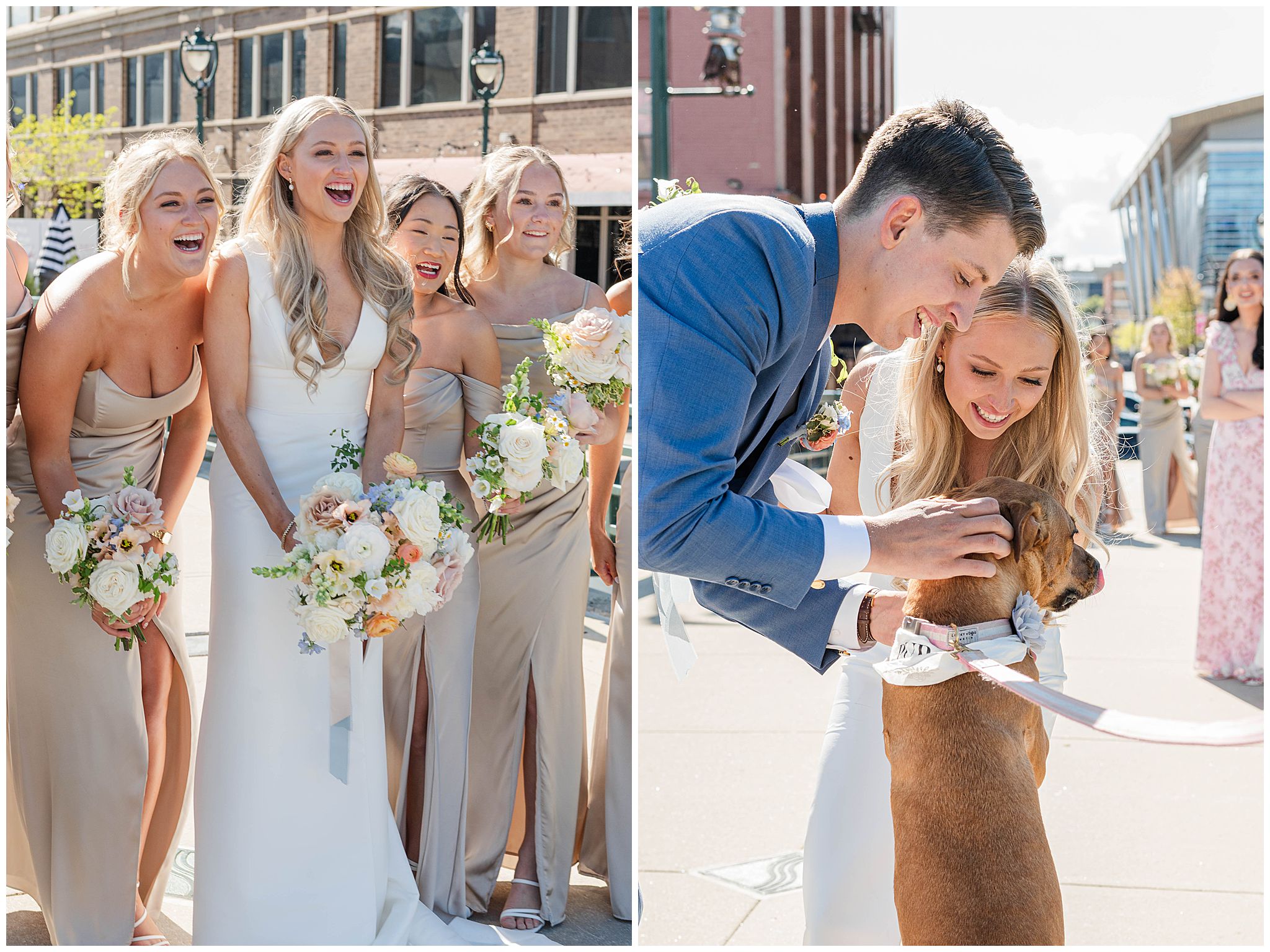 One of the most fun and meaningful moments of the day happened during wedding party photos â when Dayne surprised Elora in the sweetest way. He had a friend bring their beloved dog, Cleo, to join them for photos. Elora had no idea, and her reaction was everything. These two absolutely adore their little Cleo, so having her there made the moment even more special!