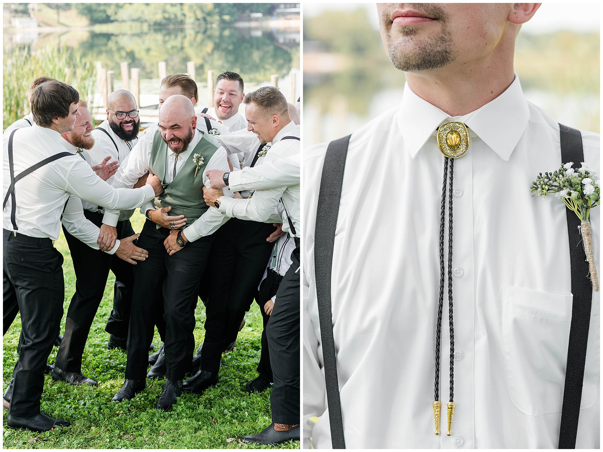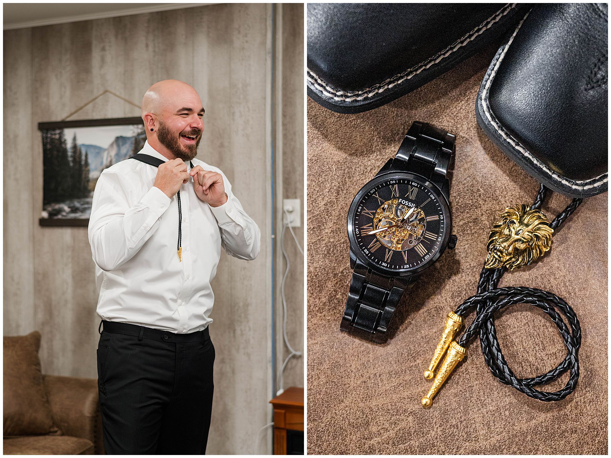 Devin and his guys added a little western flair to the celebration. As a gift to his groomsmen, Devin gave each of them personalized bolo ties, which were such a cool and unique detail. And Devin himself tied his whole look together with a pair of black cowboy boots that fit his style perfectly.