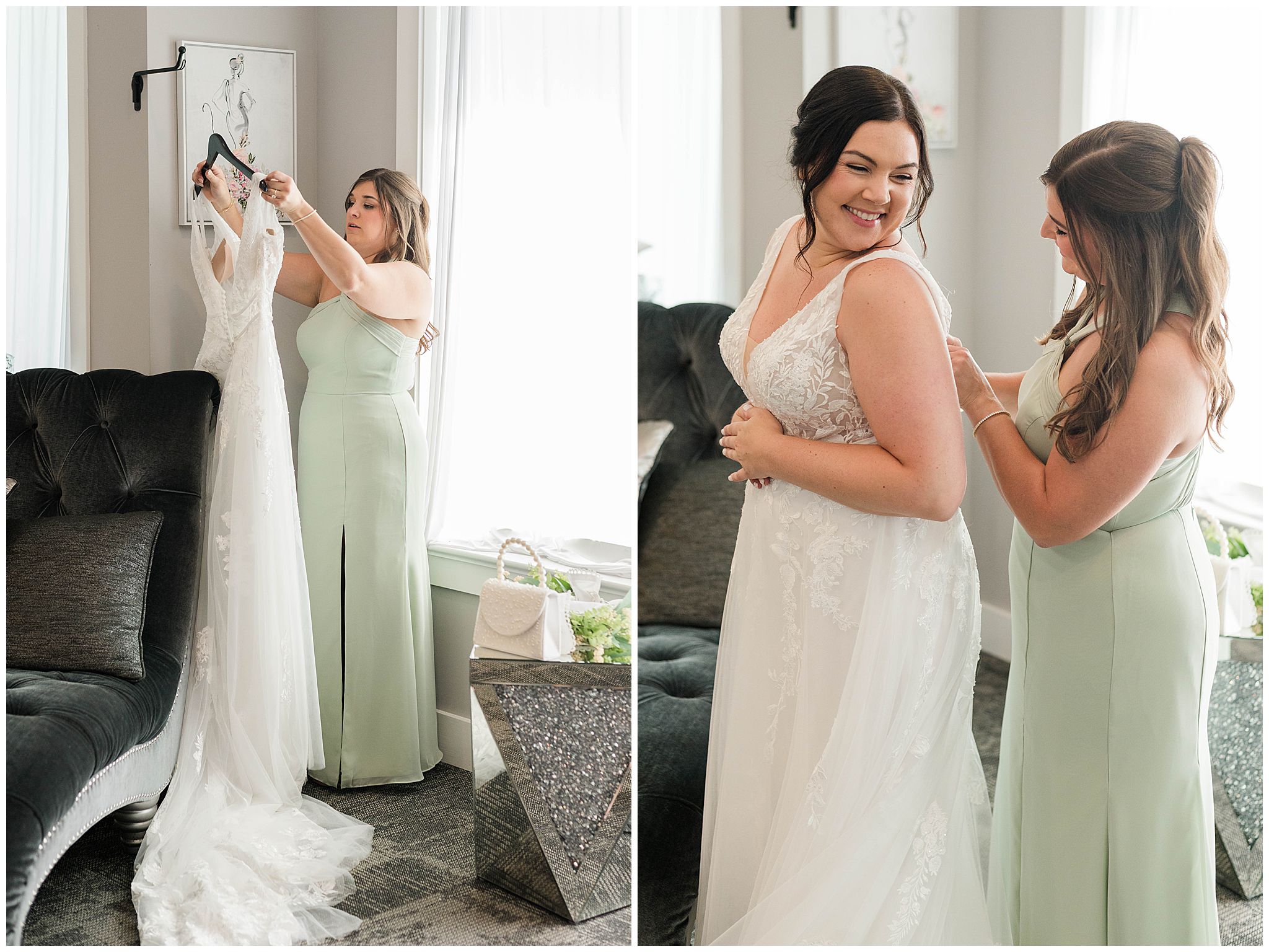 The morning started with Liz getting ready with her girls, and the energy in the room was instantly contagious. Her bridesmaids were the ultimate hype squad – cheering her on, keeping the excitement going, and making sure the whole morning felt relaxed and joyful. Even feeding her grapes like a queen on the cozy lounge chair…it was hilarious!