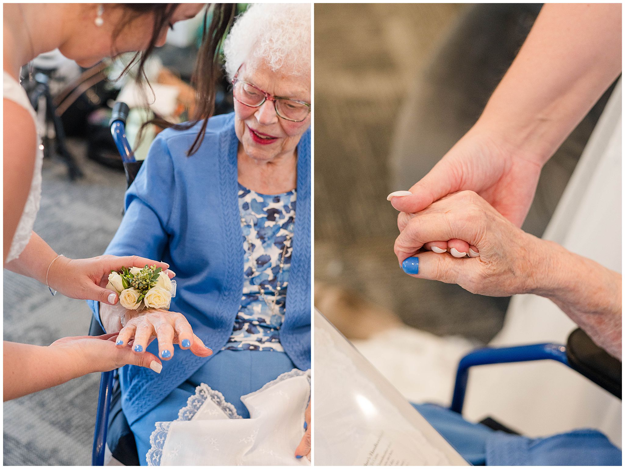 One of the most meaningful details of the entire day was Liz’s incredibly special ‘something blue.’ Her sweet grandma was there celebrating with them and wore blue from head to toe — even down to her blue nails. Her caretaker, who the family absolutely adores, was also there supporting her and wearing blue as well. Isn’t that the cutest ‘something blue’ ever? Her grandma was truly the sweetest, and it was clear how much love everyone had for her. Having her there made the day even more meaningful for Liz and her family.